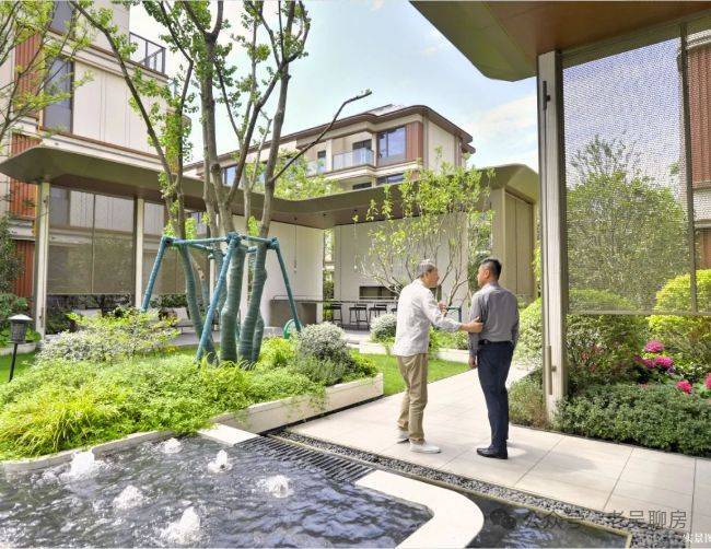 自然的情绪在“都荟慢生活园林”中流动:在园林的构筑中,将城市千年底蕴和当代审美艺术元素融合,营造城市与家庭生活之间自然的过渡地带。
