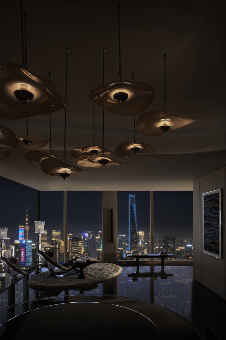 眼前是碧波荡漾,静静地透过落地窗户!那是百年外滩和滚滚黄浦江,天际线与地平线壮丽景色尽收眼底!这也是外滩,如此高度唯一无边泳池!