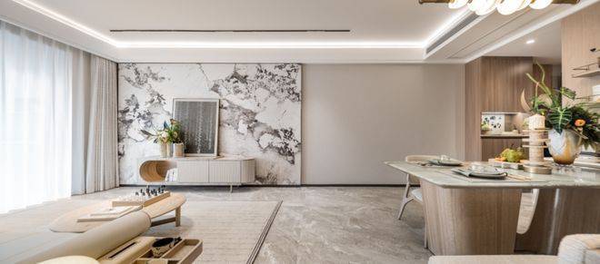 第一个亮点,室内软装是邀请梁志天大师团队进行设计的,分为两大主题,预设家庭生活场景,围绕家庭成员的居住方式,加载健身、书房、茶室、养宠等功能,展现生活的精致感与摩登感。