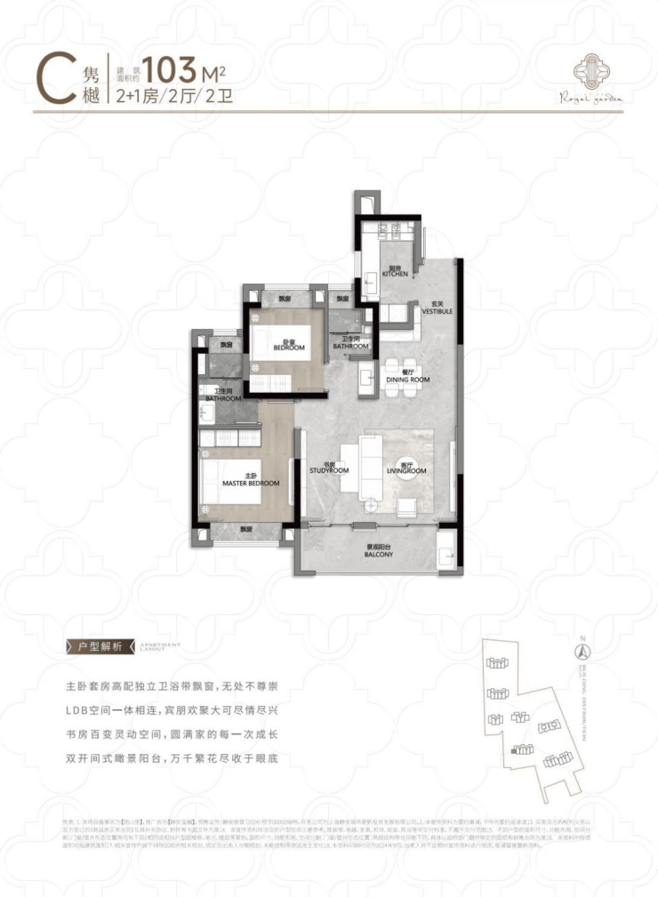 建面约103㎡2+1房2卫