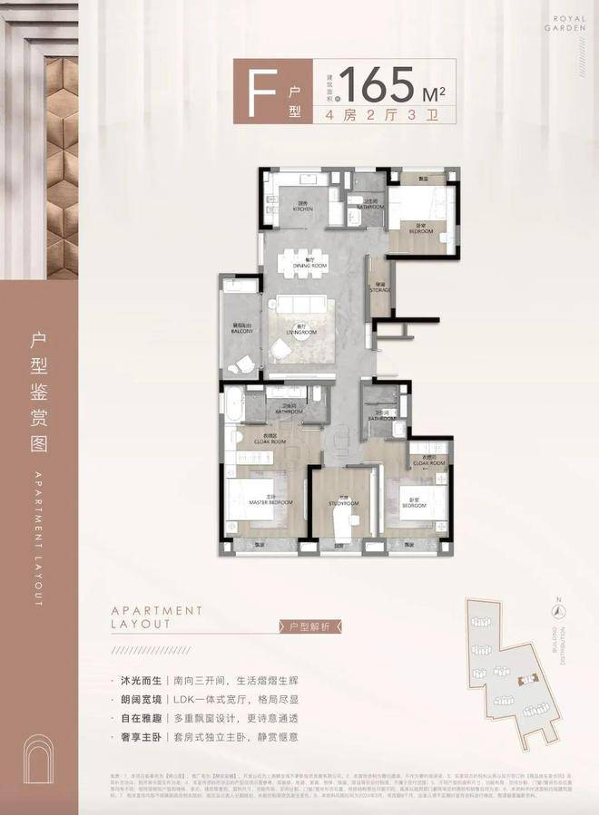 165㎡四房:横厅面宽超6米,主卧套房带衣帽间及观景飘窗,适合三代同堂。56