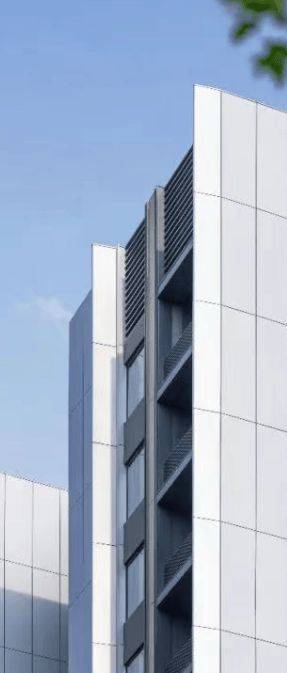 在建筑立面设计上,我们突破传统,以四面铝板幕墙构筑建筑肌理,却不止步于单调——特别标配多色混搭工艺,让深灰的沉稳、银色的科技感与米色的温润和谐共生。