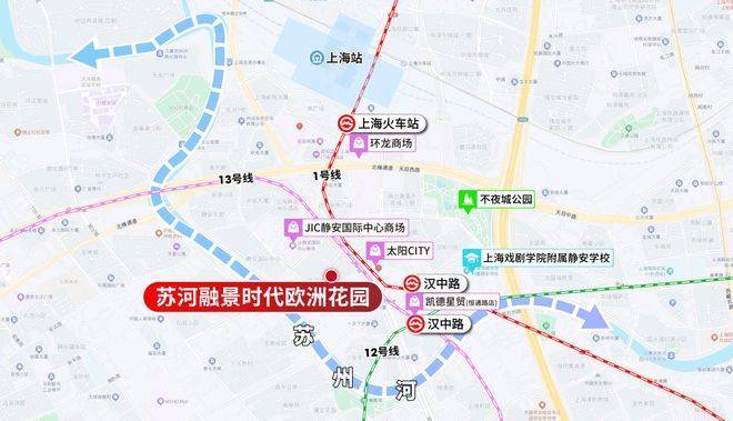 苏河融景,步行约188米1/12/13号线汉中路站!进站后2站人民广场,2站南京西路、2站北外滩!同时项目近邻东西大动脉北横通道、南北大动脉南北高架以及内环高架,自驾迅捷通勤全城!