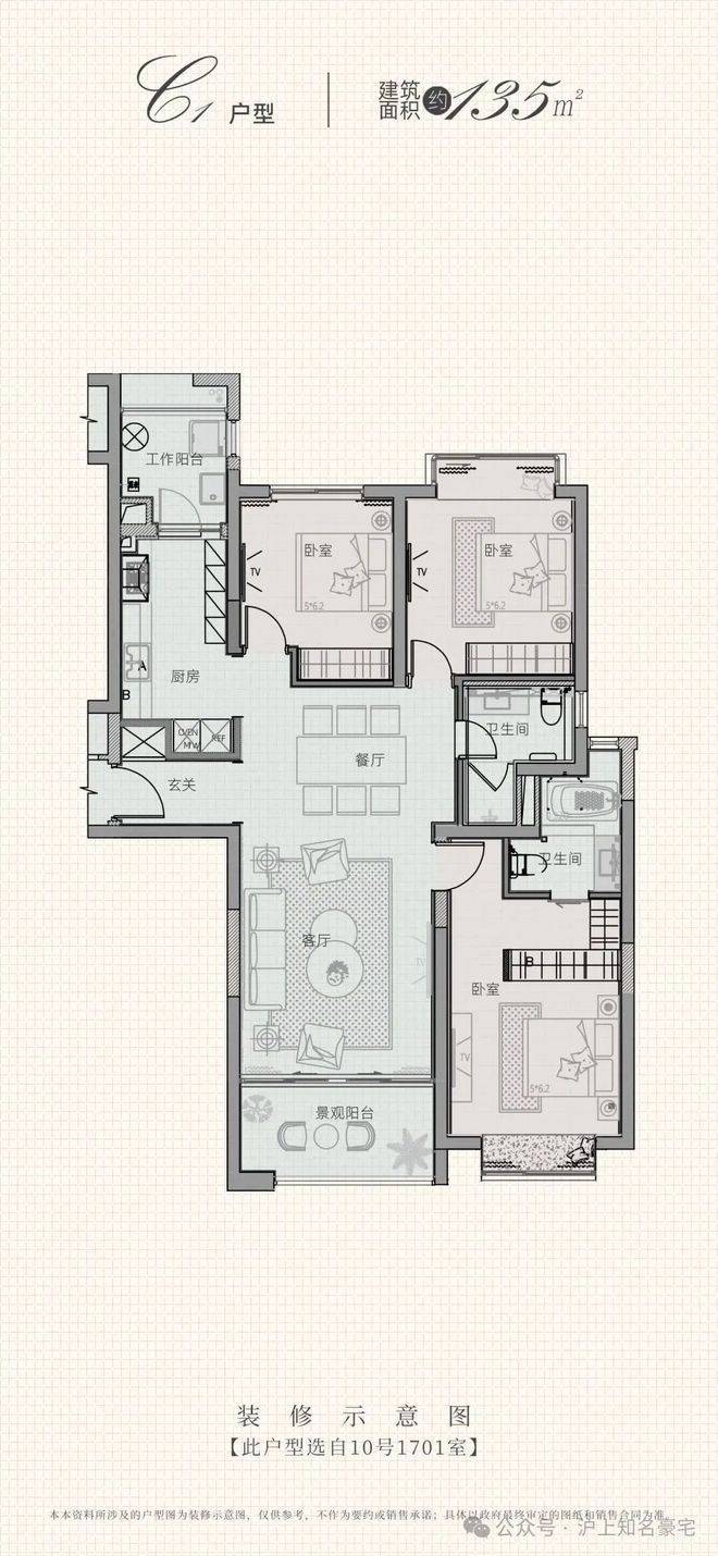 建面约135㎡灵动3房户型