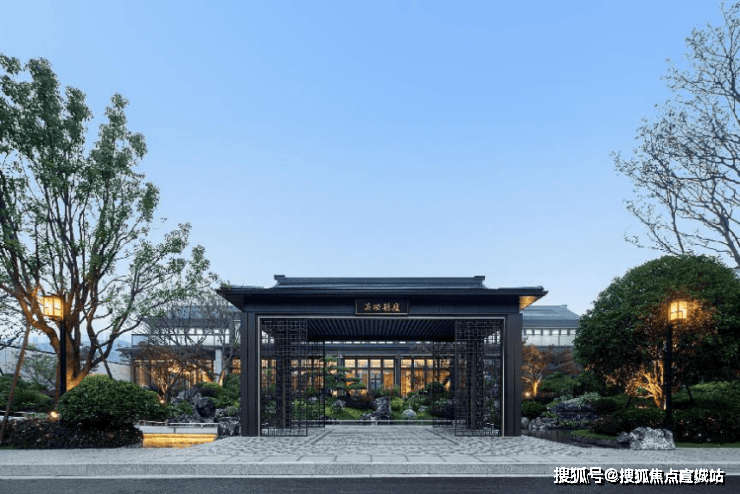 新中式,院墅,中式的坡屋顶与通透的大玻璃立面结合,将东方的传统意境与国际化的审美融合,像极了当前的杭州也像极了此刻的龙坞,既老又新,既传统又现代,既有西子湖的温婉又有钱塘江的磅礴,碰撞出一种全新的审美与生活方式。溪映听庐隆起的屋脊,仿佛群山的绵延,大地与人文交织出全新的风景。建筑设计出自gad手笔,立面以浅灰石材、咖啡色铝板、涂料为主,主打一个“水墨淡彩”,悬山顶出檐深远、举折平缓。