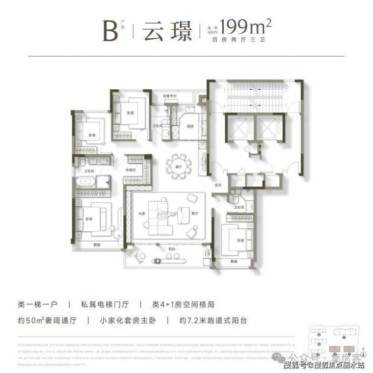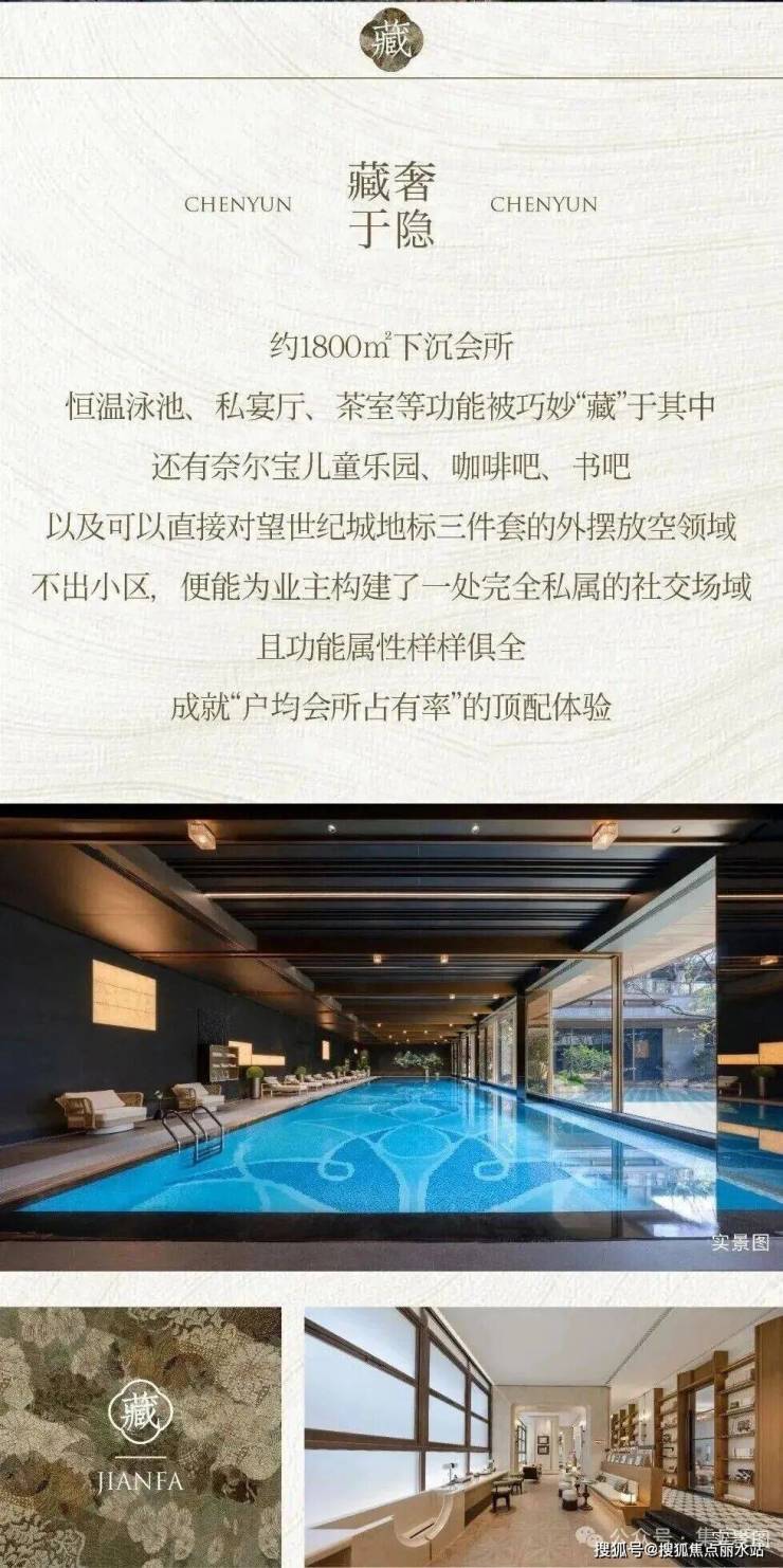 首先从小区品质来看,宸云并不是那种混合刚需与改善的综合盘,而是纯粹为改善群体定制。164户的体量,配上约1800方的下沉式会所,恒温泳池、私宴厅、健身房、书吧等功能一应俱全,真正实现了“少数人的圈层生活”。
