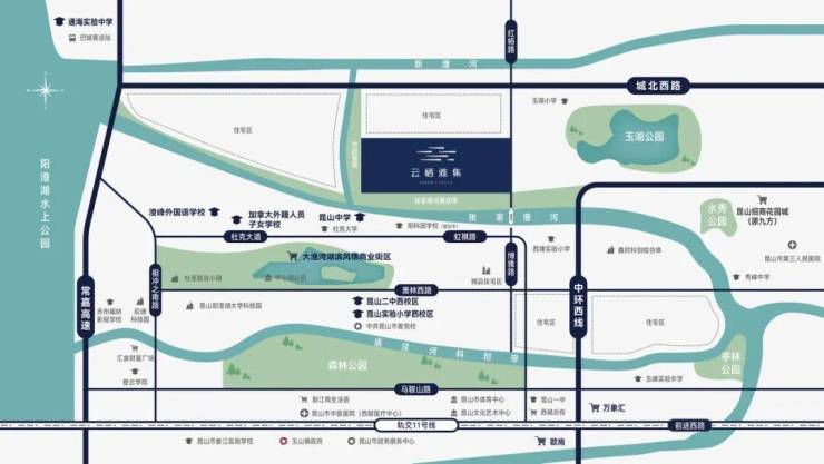 • 所属区域:昆山市巴城镇(城西板块) • 详细地址:红杨路与张家港河交汇处 • 开发企业:昆山栖云置业(昆山市乡村建设集团)