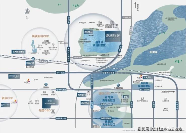 紧邻苏州北站高架/苏台高速/常台高速、沿阳澄湖第三隧道(建设中),可快速抵达苏州中心。