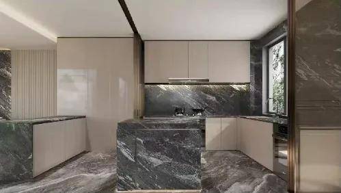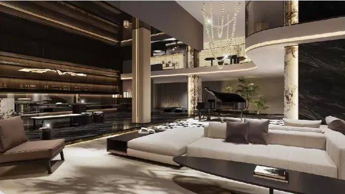 地库以定制环氧地坪、不锈钢镂空星空顶与发光灯膜、石材内嵌墙面实现高定精装设计,打造酒店式环岛·车马厅仪式·T台感车道,更通过地下入户光厅的金属饰面、仿石铝板及线条细节,绘就流光质感的归家叙事。
