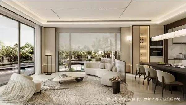 怀山望以曲面设计,搭配南向约0.6超高窗墙比,约270°环幕全景舱,消融室内外界限,阳光与风景自然涌入。