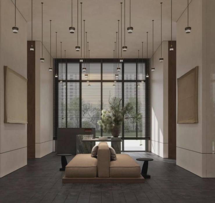 大堂除了给业主带来更强的仪式感外,项目还打造了架空层泛会所空间,并且将室内精装标准延伸至架空层内部,结合约5.1米的层高,打造了能满足业主足不出楼的多元化社交空间。