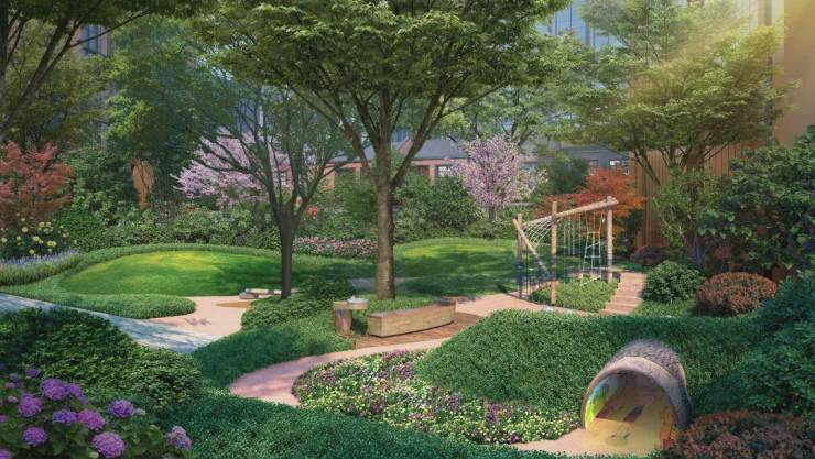 特邀贝尔高林设计的中央主题景观,配合分布式的泛会所打造“公园式度假生活”主题景观;社区外还有北站规划的大面积集中公共绿化,在寸土寸金的内环,实在是奢侈。
