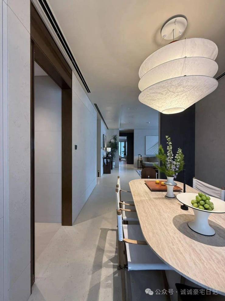 项目层高突破传统住宅达到约3.3米,空间感十足!搭配墙面、地面选用的米白色天然石材,以及顶部特殊的圆弧造型,通透造型空间尽显塔尖气质。