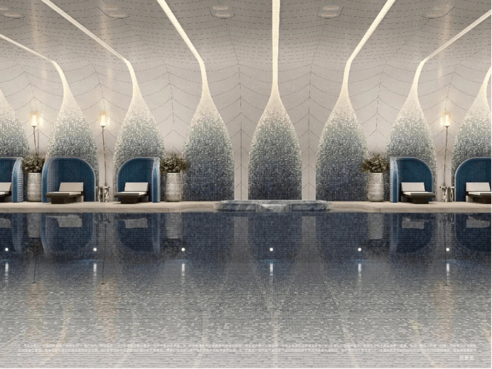充分考虑业主的个性化需求,在电视背景板提供了新潘多拉、云中翡翠、弗朗明戈金三种结晶釉面岩板选择,成本更高,施工难度也更大。