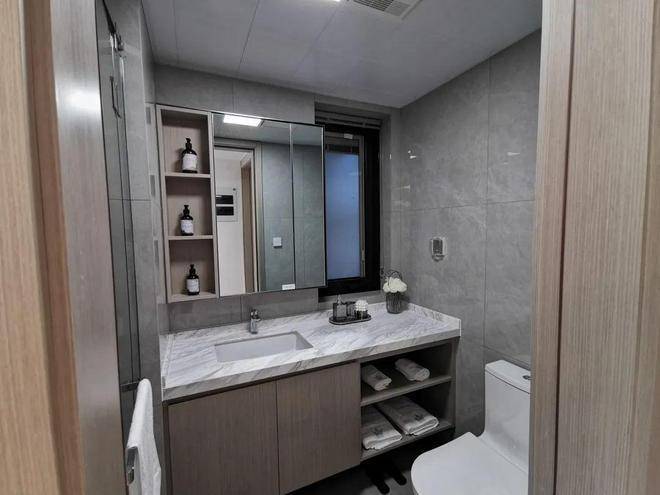 U型厨房,操作台与厨房动线符合人体工学设计,转身之间,洗、切、烹、炒流畅便捷,与餐客厅形成一条笔直的居家生活动线;三间卧室全附带飘窗,拓宽了景观视野的同时,增加了实际空间使用率;南向主卧做了带独立卫生间的套房设计,仪式感和私密性更强。