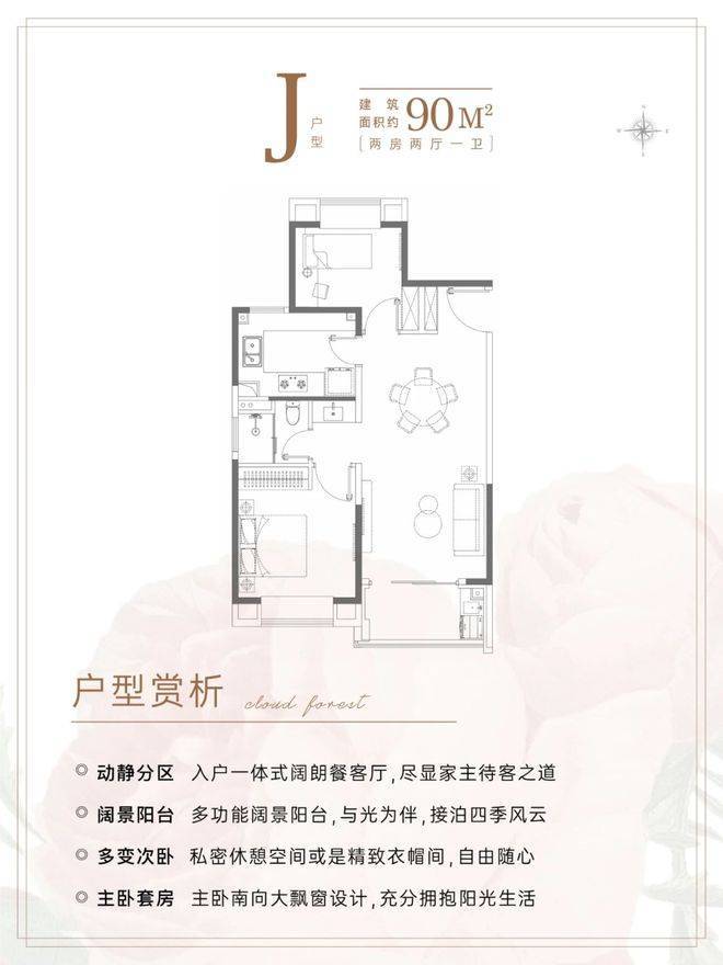 这样一个2房户型,既保证了舒适度,总价还控制在千万以内,给“预算刚需”的购房者一个很好的上车机会。