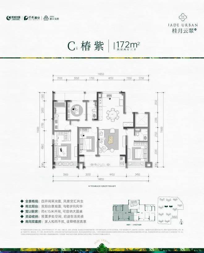 【户型面积】建面约98㎡、110㎡、119㎡、139㎡、172㎡