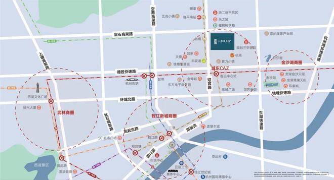 【东湖高架路】项目东侧约800米,向南衔接德胜、钱塘两条快速路,开车直达到市中心、钱江新城以及滨江奥体、萧山机场。