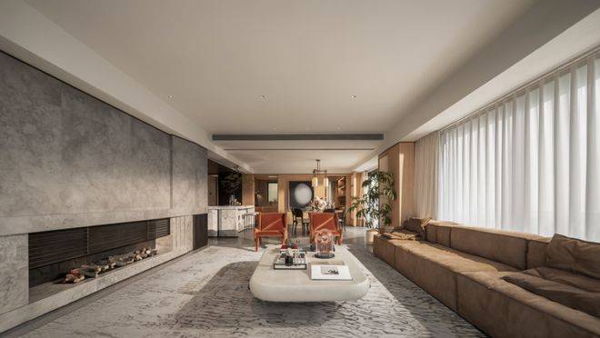 约240㎡客厅,成为家族迎来送往的“私人会所”。连通北向次卧形成近90㎡的LDKGT超级厅堂,无论是商务伙伴的远见卓识,还是家族挚友的午后闲谈,都在此从容承载。