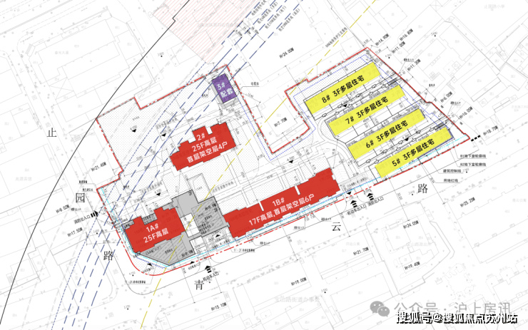 西侧为17-25层高层住宅,东侧为4栋3层联排.