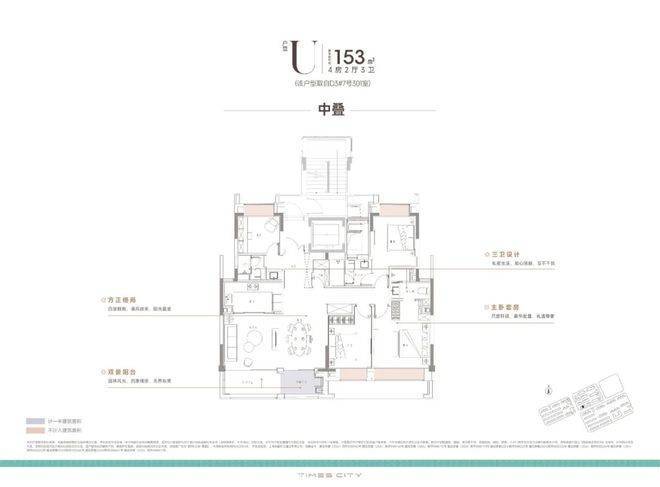 项目的中叠四开间朝南,超大IMAX的采光面,妥妥市区豪宅大平层的尺度感。