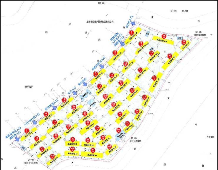 地块北侧和东侧临河,南侧临城市绿化带,限制条件较多,交通主要出入口沿西侧的江湾城路布置,方便出行。