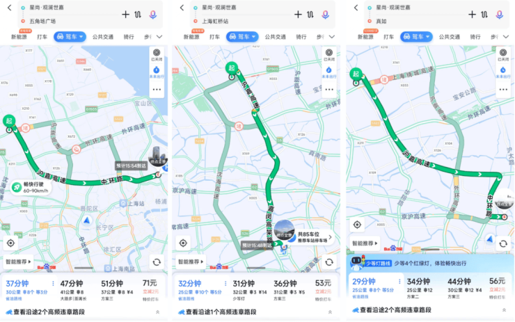 尤其是去真如、五角场以及虹桥主城区等城市CBD,真的是非常方便,来看百度地图的测距: