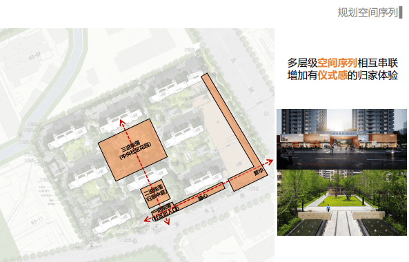 打造了品质社区出入口广场---尊享迎归院景及景墙--精致温暖的入户门厅,尊贵礼序的三进式院落归家空间,使业主归家路充满仪式感。