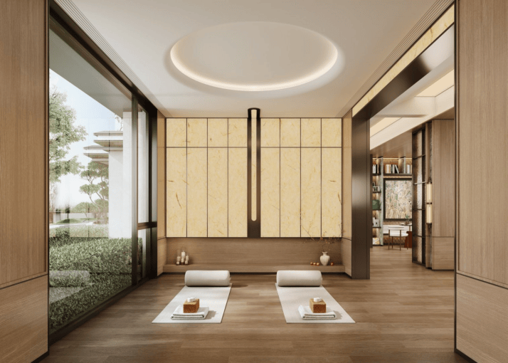 The "Vitality Elevated Floor" in Building 4 is designed to meet the social and health needs of urban elites. It features a chess area, a movie-watching area, a tea space, a gym, a yoga room, and more. It also introduces a 24-hour self-service coffee bar - "Sunset Coffee Bar".