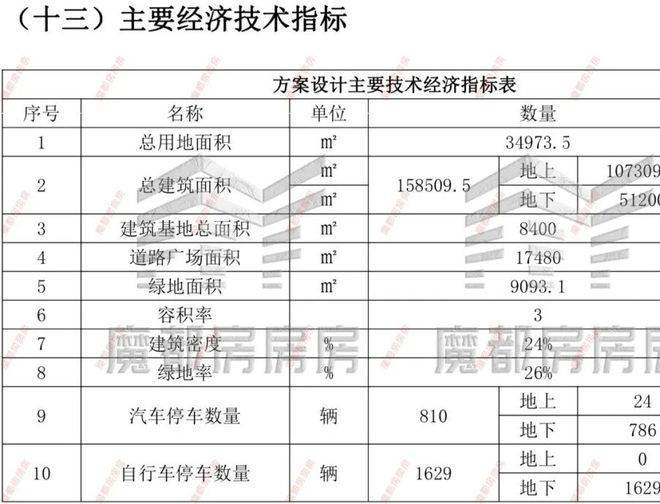 建筑总用地面积3.5万m²,总建筑面积158509.5m²,含地上建筑面积107309.5m²及地下建筑面积51200m²。在地上功能中,商办组团共63780.5m²,住宅组团共41140.0m²。项目设双层地下车库,共计停车位810辆。