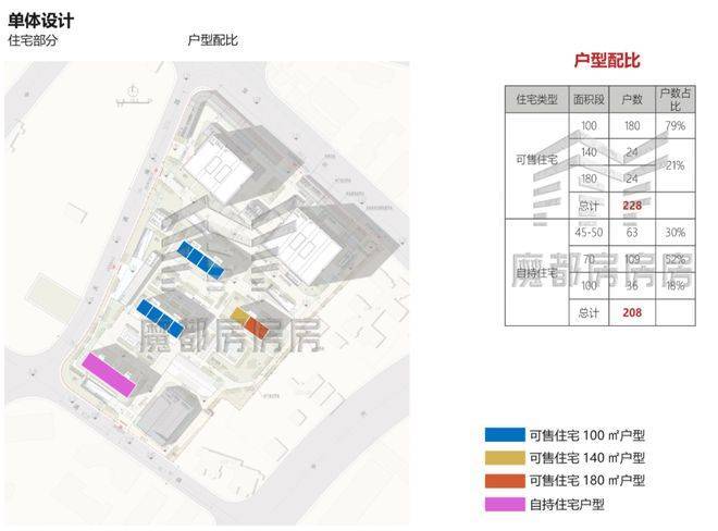 R4#租赁住宅:为高层独立住宅,户型含45-100m²面积范围,地上共26层,建筑总高度为79.95m。