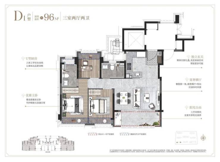 建面96-103㎡三房(总价约710万起)