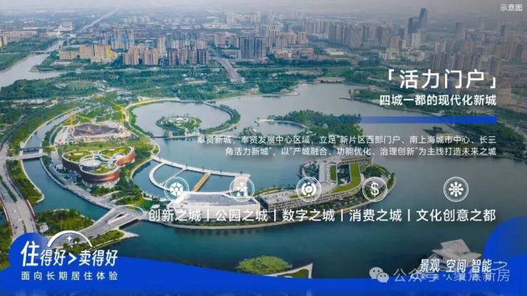 《上海市城市总体规划﹙2017-2035年﹚》中,奉贤被定位为“上海南部中心城市”。以东方美谷和数字江海国际化产业园区,打造全国领先的产业集群,规划建设有约2.53平方公里“上海之鱼”、约32公里“十字水街”岸线、全长约50公里田字绿廊,形成“国家生态园林城区”