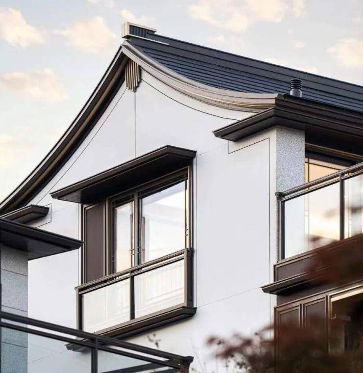 1️⃣大师筑境悬山顶、歇山顶等东方屋檐,举折、鸱吻、悬鱼等屋脊装饰,并结合铝板+极简线条等现代元素,营造独具韵味的当代山水建筑