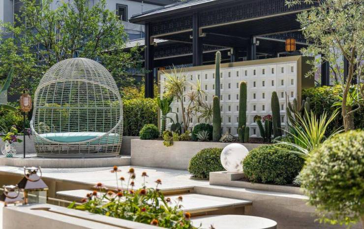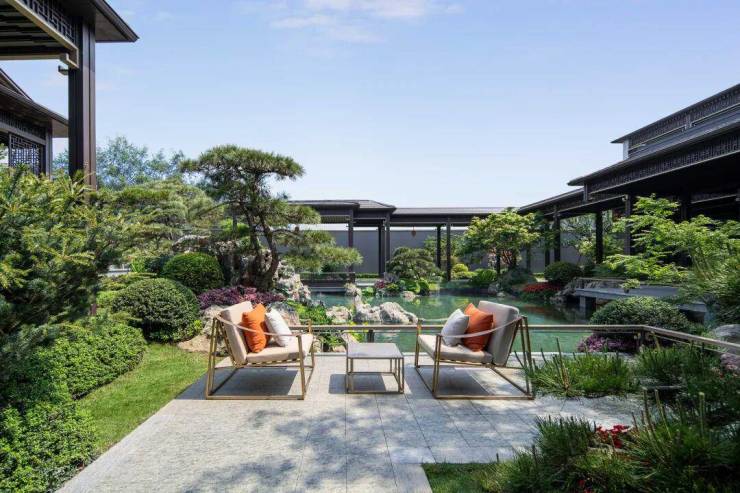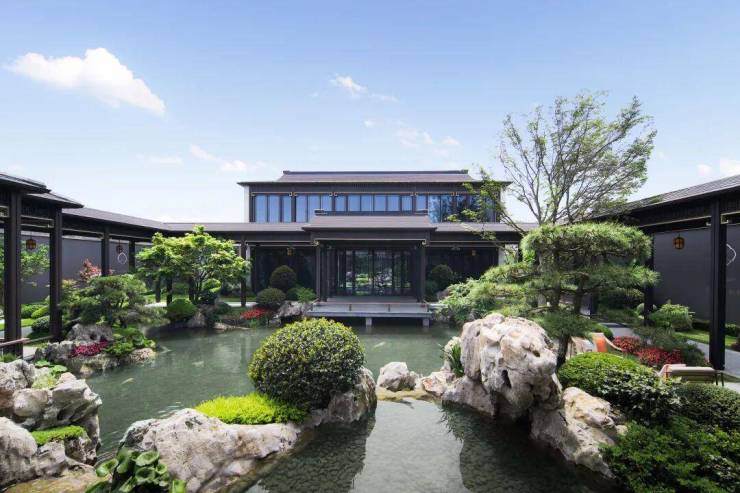3️⃣寰秀园境从宋画中汲取灵感,将内庭院墙、山石松色、镜水碧波融入园中