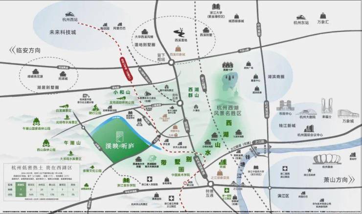 鼎立杭州三大中心,半小时通勤覆盖未科、钱新、奥体,既是山水桃源,亦是可日常居住的主城第一居所。