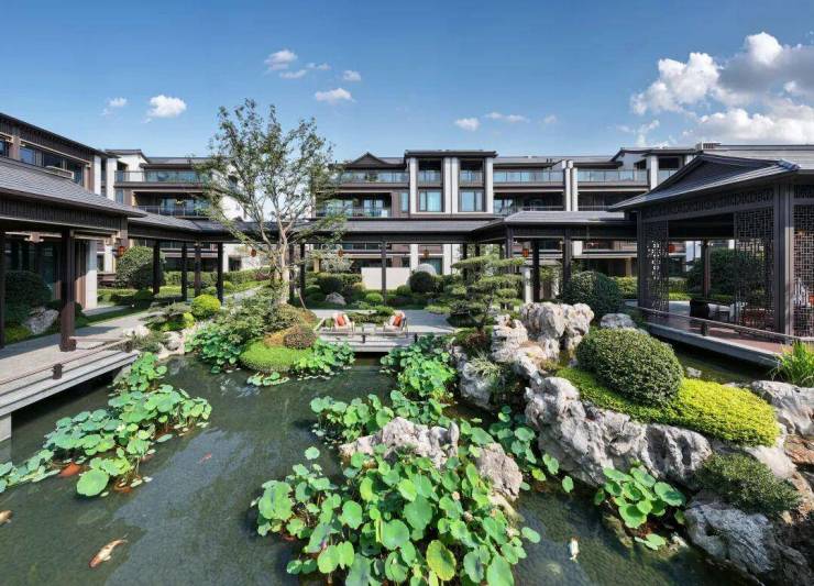 2️⃣江南院境沿山而建,与山水浑然天成,还原江南烟雨院居生活,惬意非凡