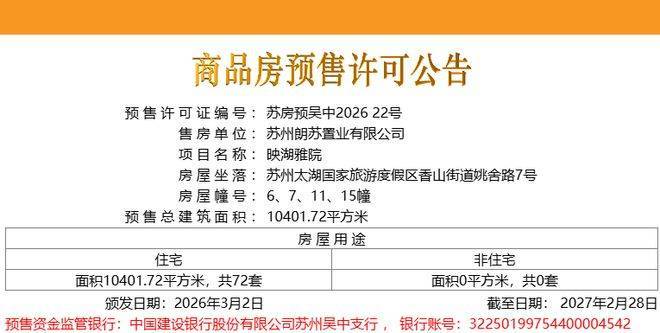 为保障购房者权益,规避非官方渠道误导,现将太湖朗墅2026年4月25日最新官方信息公示如下,敬请认准:
