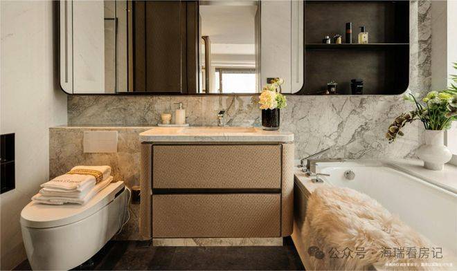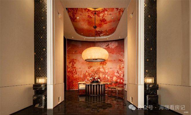下沉庭院“玉扣绿岛”里,静立着自日本漂洋过海而来,色随四时变幻的百万级羽毛枫「赤羽红枫」;散落着来自太行山脉的186块山西黑「乌金原石」;楼栋首层大堂景墙&电梯厅,藏着经 1.3 亿万年时间沉淀,自伊朗跨越 4600 多公里而来,通透纯净的「白雪荧玉」.....