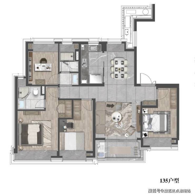 走进建面约155㎡央景平层之内,随时都能感受到生活的尊贵身份感和仪式感,南向四开间设计,为室内引入更多光影与清风。双套间主卧设计,则是此间生活的精髓所在。它精准回应了现代家庭对独立空间与亲密共处的双重需求。
