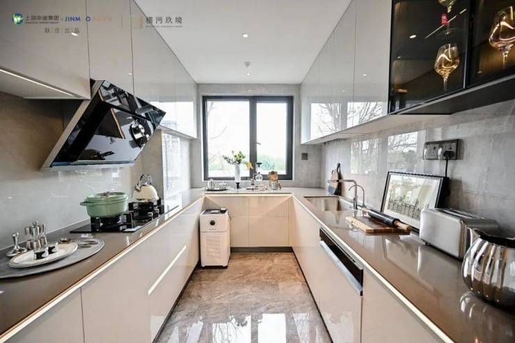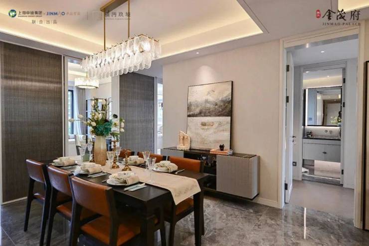 侧边可以做洗护功能区,放置洗衣机、烘干机、储藏柜收纳等。餐厅空间相当阔绰,可放置 四人桌或六人桌 ,尺度之大在600万级产品中非常难得一见。U型厨房带飘窗的设计,左侧预留了 双开门冰箱位置, 让整个空间的利用率更高。交付标准相当奢豪华,配置 西门子的灶台、油烟机、洗碗机高配三件套,弗兰卡的水槽及抽拉式龙头,石英石台面,欧派定制柜柜体,部分金茂定制岩板的墙面等。双卫设计, 避免早上洗漱的“排队”,充分体贴日常需求。