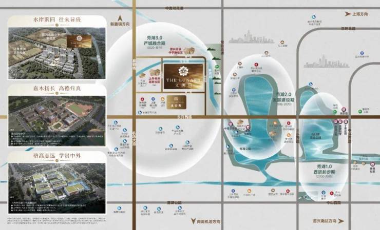 项目以 1.5 容积率打造区域内低密标杆,坐落于“空港秀水创新绿谷"与"运河湾新城"核芯板块,马泾港与新塍塘两河交汇处,形成水岸萦回的半岛谧境。周边教育资源丰富,毗邻上海外国语大学高新校区(在建)、嘉兴高级中学(在建),人文氛围浓厚,滋养一方家学风范。