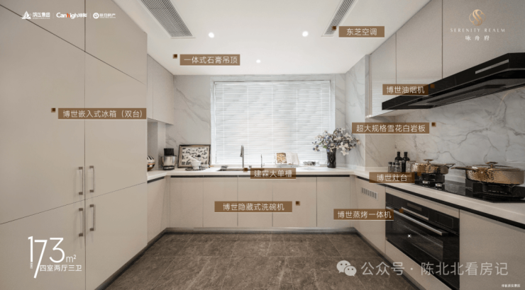 厨房配备空调 +博世六件套,预留双开门冰箱位;