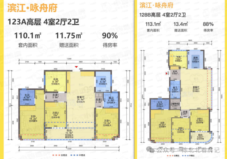 二、128㎡王牌户型,实得率约 88%,空间无浪费