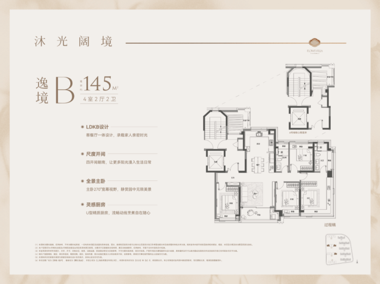 1、建面约145平户型热销且紧缺四房产品,类一梯一户设计,边套转角窗搭配超高窗墙比,采光通透,兼具功能与尺度的双重要求;