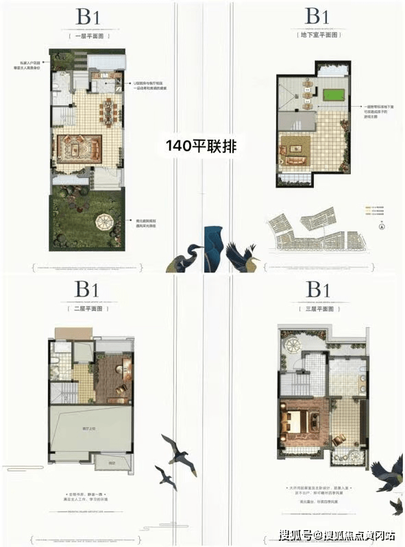 建面141平方联排户型,6.8米面宽的客厅、更大的花园和地下室等空间,