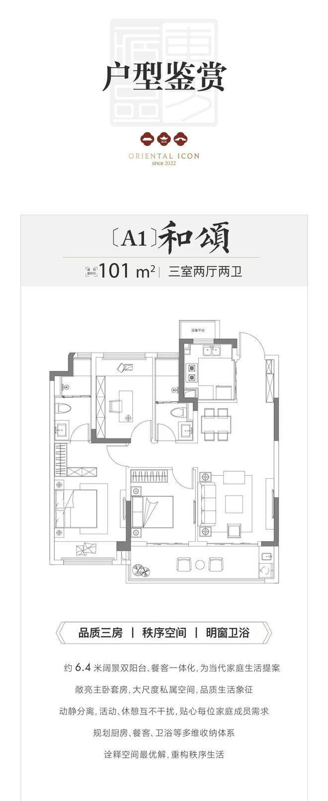 建筑面积约123㎡进阶三房,灵动空间设计,空间更加轩朗,可跟随家庭的生命周期而变换功能。
