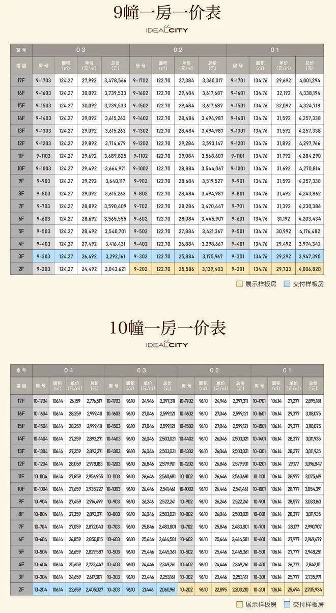首开均价约27928.35元/平,最低总价约206万起!9幢,一共48套,均价29355元/平;10幢,一共64套,均价26581元/平。