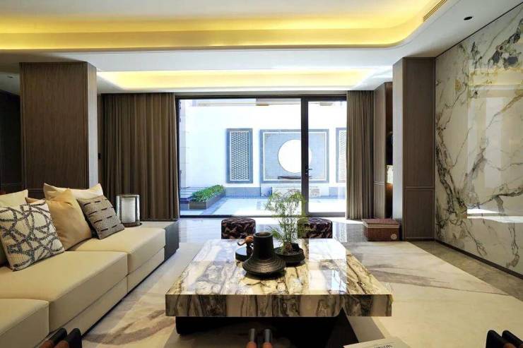 下沉式院落焕新为地上庭院,扩大院子面积,为客厅的延伸与衔接留下更多想象空间。
