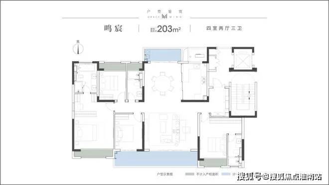 建面约203㎡,四室两厅三卫